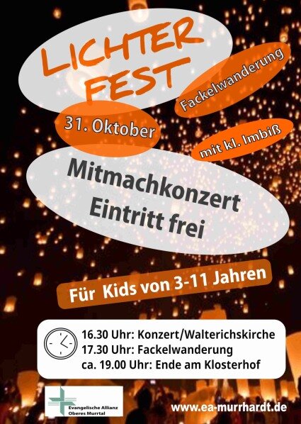 Lichterfest der Evangelischen Allianz in Murrhardt am 31.10. 2025 um 16.30 Uhr